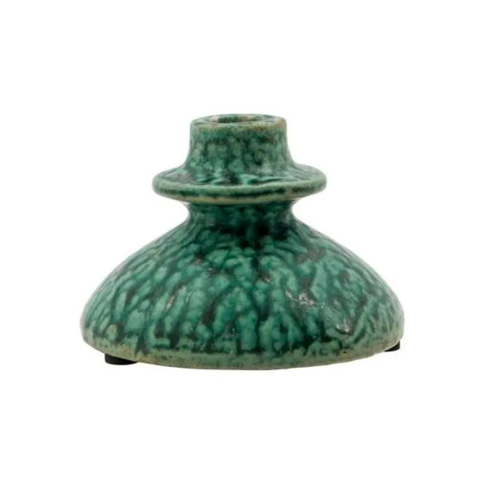 Håndlavet og finurlig lysestage, der tilføjer en rustik charme til ethvert rum. Lysestagen er fremstillet i terrakotta og udført med en reaktiv glasur, der minder om irret kobber – dét gør stagen yderst unik. Lysestagen er ideel til skabelsen af en hyggelig atmosfære. Stagen er håndlavet, hvorfor den kan variere i form, størrelse, farve og finish.