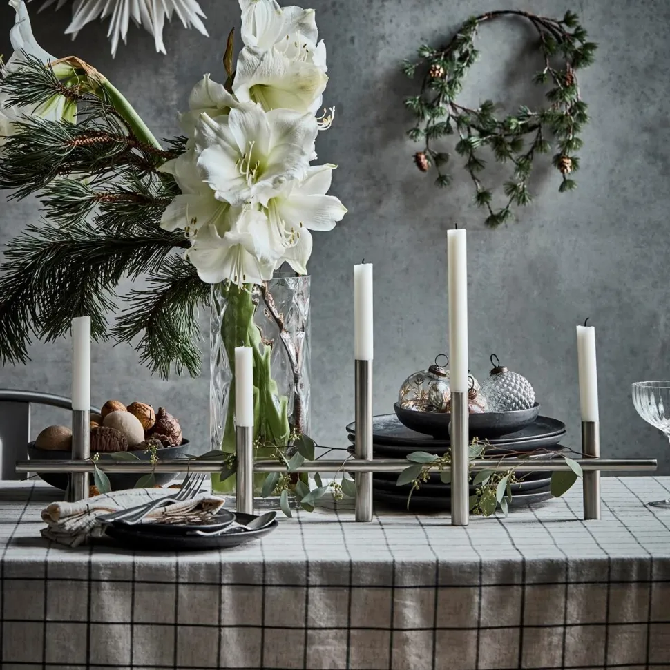 Lad denne fine lysestage blive centrum for juledekorationen. Lysestagen forener klassisk elegance med moderne enkelhed. Den solide konstruktion og de fine detaljer giver et eksklusivt udtryk, der komplementerer både traditionelle og nutidige juledekorationer. Med plads til flere lys fungerer stagen smukt som centrum på et bord eller som del af en større opsætning. Dekorer med gran, kogler eller ornamenter for at fremhæve det fine håndværk og skabe en stemningsfuld helhed.