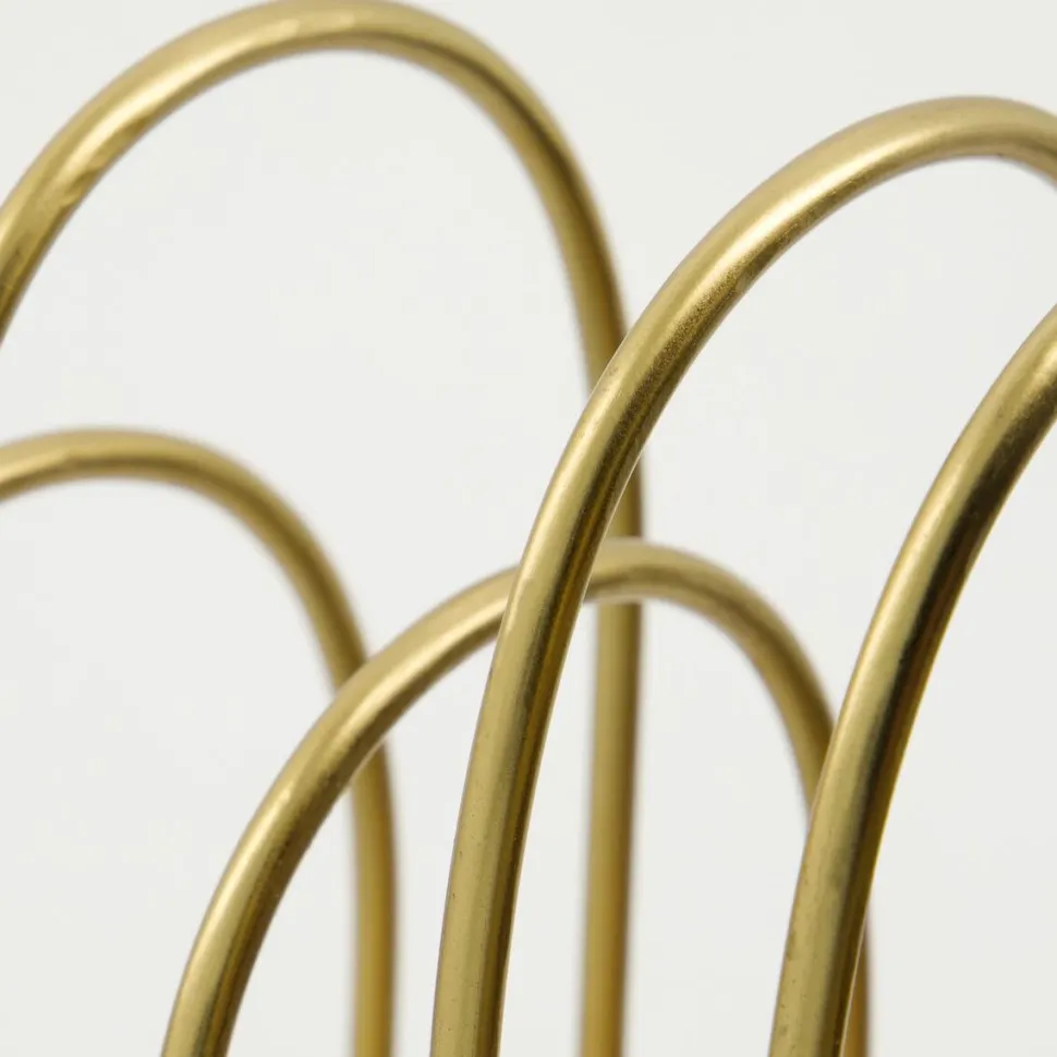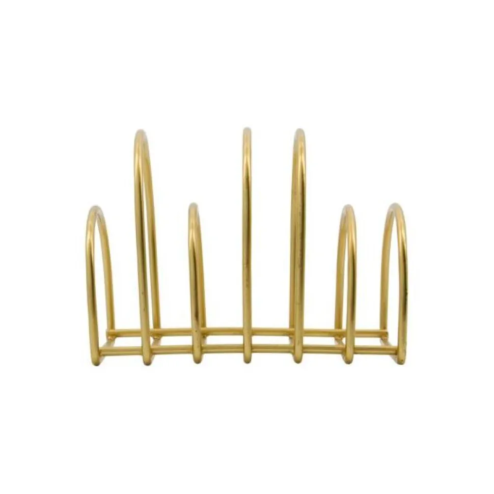 Giv arbejdsområdet et løft med denne elegante dokumentholder, der er ideel til organisering af notesbøger, breve eller fotos. Organisatoren er fremstillet af jern og udført med en børstet messingfinish. Dokumentholderen kan både placeres på bordet eller monteres på væggen som en stilfuld mini-hylde.