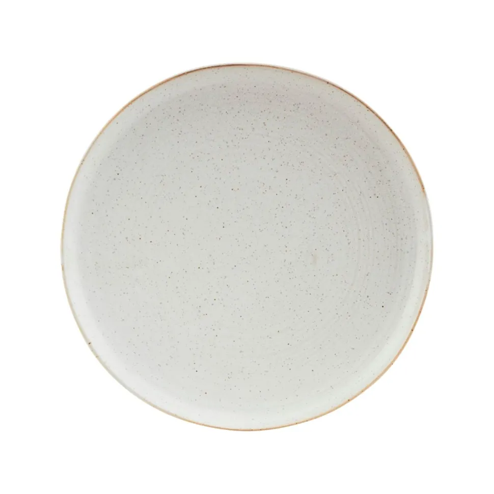 Enkel og yndig tallerken, som grundet sin størrelse er særdeles velegnet til frokost eller mindre aftensmåltider. Tallerkenen er lavet af porcelæn og udført i et enkelt og uformelt look. Som følge af glaseringens lyse, neutrale nuancer og plettede struktur er den smuk at kombinere med de tilhørende elementer fra Pion-stellet eller mønstrede skåle, for herved at skabe et unikt og finurligt touch.