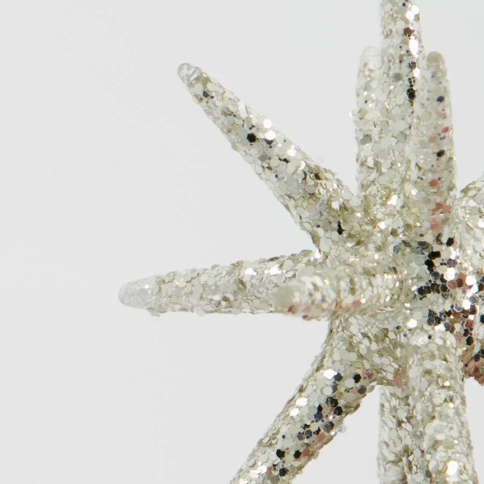 Funklende stjerne, der på fineste vis skaber en magisk atmosfære. Stjernen er udført i glas, som er dekoreret med glimmer. Julestjernen er lige så alsidig, som den er dekorativ. Stjernen kan eksempelvis benyttes som en del af gaveindpakningen, placeres på middagsbordet eller hænges på juletræet. Julen handler om at skabe en personlig stemning, hvorfor netop denne julestjerne er helt ideel.