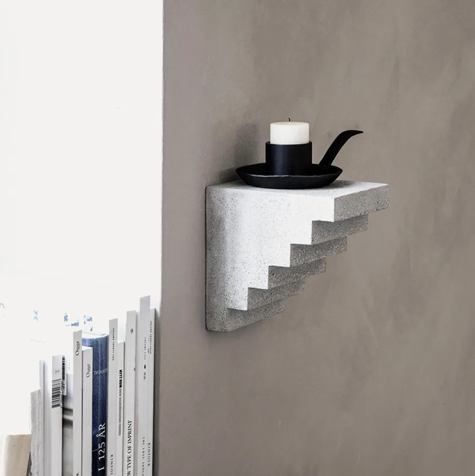 Sjovt og finurligt kunststykke, som foruden dit fine design har et utal af anvendelsesmuligheder. Man kan eksempelvis anvende den som bogstøtte i reolen, som en lille hylde eller blot som et dekorativt element i indretningen. Kunststykket har grålige nuancer og er fremstillet i cement, hvorfor den er enkel i designet.