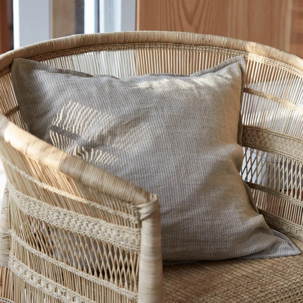 Fin og dekorativ pude, der øjeblikkeligt forvandler udtrykket i boligindretningen. Pudebetrækket er udført med smalle, sennepsfarvede striber og fremstillet af hør. Puden tilføjer et afslappet og indbydende udtryk. Qua dens tidløse design, er puden ideel at kombinere med andre puder i materialer og mønstre.