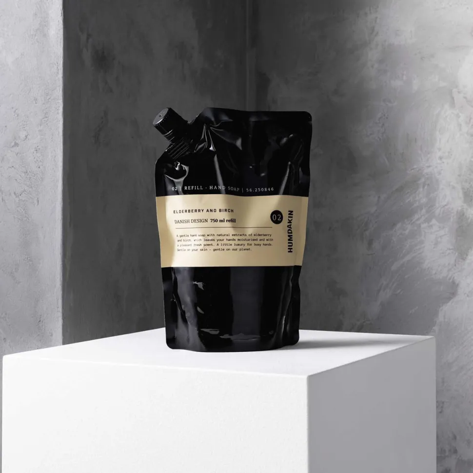 Smart og praktisk refill-løsning, som muliggør genopfyldning af ens yndlingssæbe. Sæben er en mildt skummende og duftende håndsæbe med naturlig ekstrakt fra hyldebær og birk, som ikke blot efterlader hænderne bløde, men også med en dejlig, behagelig duft, der henleder tankerne til sensommerens lune aftener.