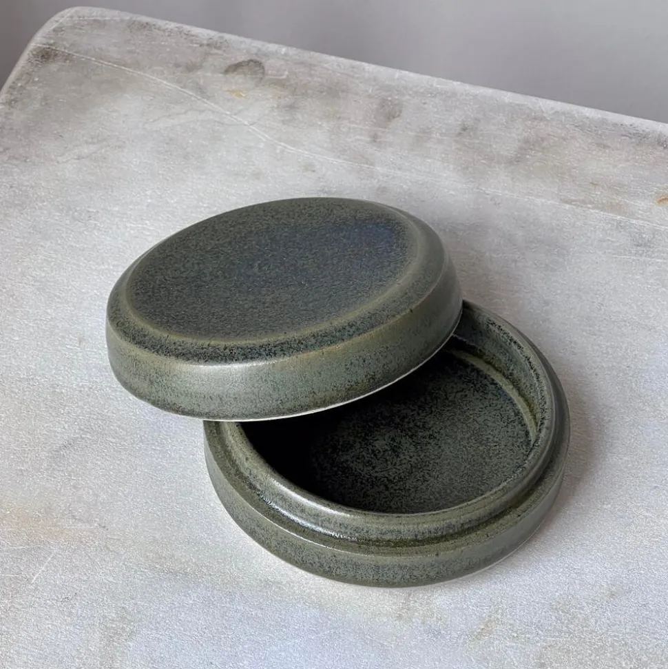 Smukt og enkelt smykkeskrin, der er skabt til opbevaring af smykker og andre små skatte. Smykkeskrinet tilfører lidt kulør til hjemmet, hvormed det fint dekorerer på badeværelset, på bogreolen eller på natbordet. Smykkeskrinet er håndlavet i Danmark, hvorfor der kan forekomme variationer i farve, form og størrelse. Dette er charmen ved håndlavet keramik, hvilket bevirker, at billederne kun er vejledende.