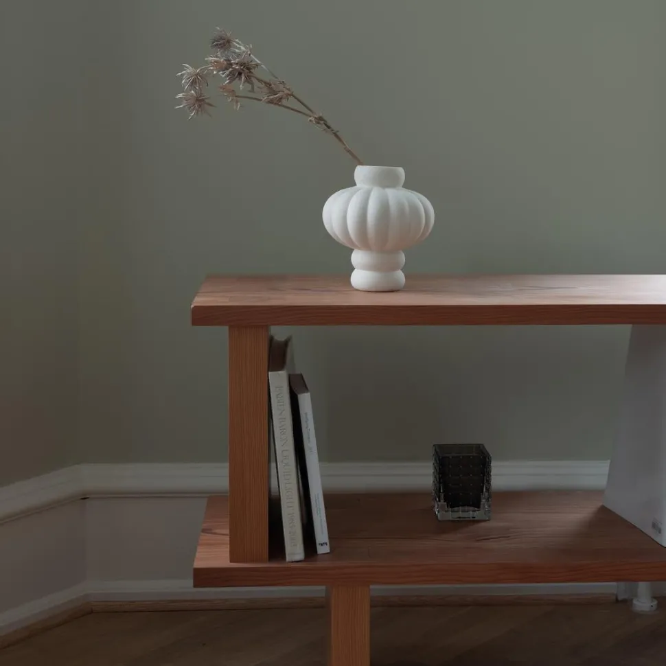 Vasen er udført med en sandet struktur, hvorfor variationer og mindre farveforskelle vil forekomme. Qua vasens uglaserede overflade er den mere modtagelig overfor fingeraftryk og støv – dét kan nemt fjernes med vand, opvaskesæbe og en blød svamp.