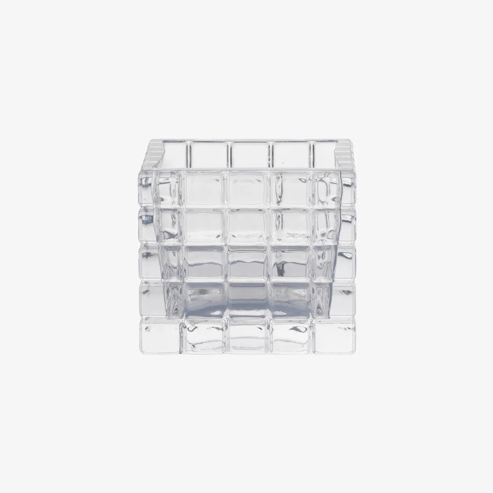 Enkel, elegant og subtilt levende lysestage, der er inspireret af ‘The City That Never Sleeps’ – New York City. Designet er markeret med sine kubiske detaljer og fremviser et interessant samspil mellem en solid, men blid taktil. Qua formsproget brydes lyset på fineste vis, hvorfor den i an sin enkelthed er et dekorativt element. Lysestagen er mundblæst, hvorfor ej to objekter er identisk.