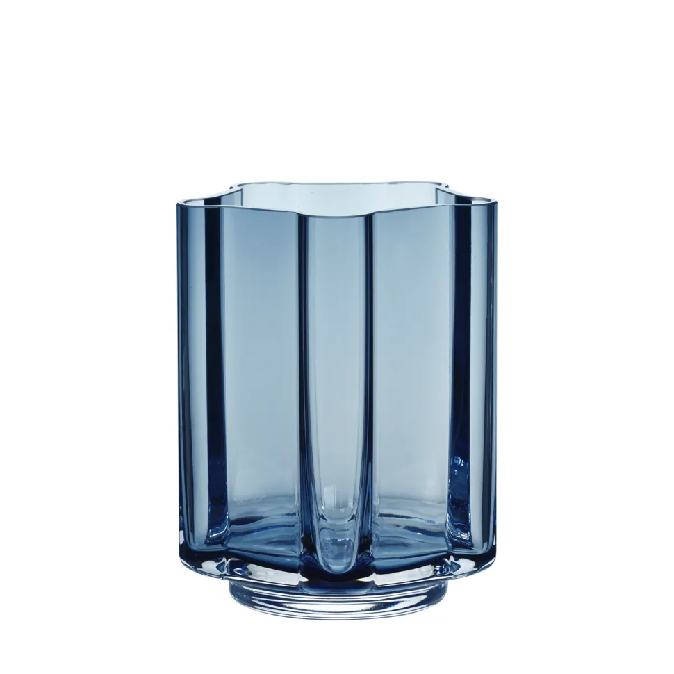 Moderne og sofistikeret fyrfadsstage, som er fremstillet i mundblæst glas. Karakteristisk for lysestagen er tykkelsen på glasset, som understreger voluminøsitet og rubusthed, hvilket tilmed er kendetegnende for betonsøjlerne, som designet er inspireret af. Farvevalget er særligt udvalgt for herved at fremhæve det skulpturelle og arkitektoniske design, som er indarbejdet i stagen.