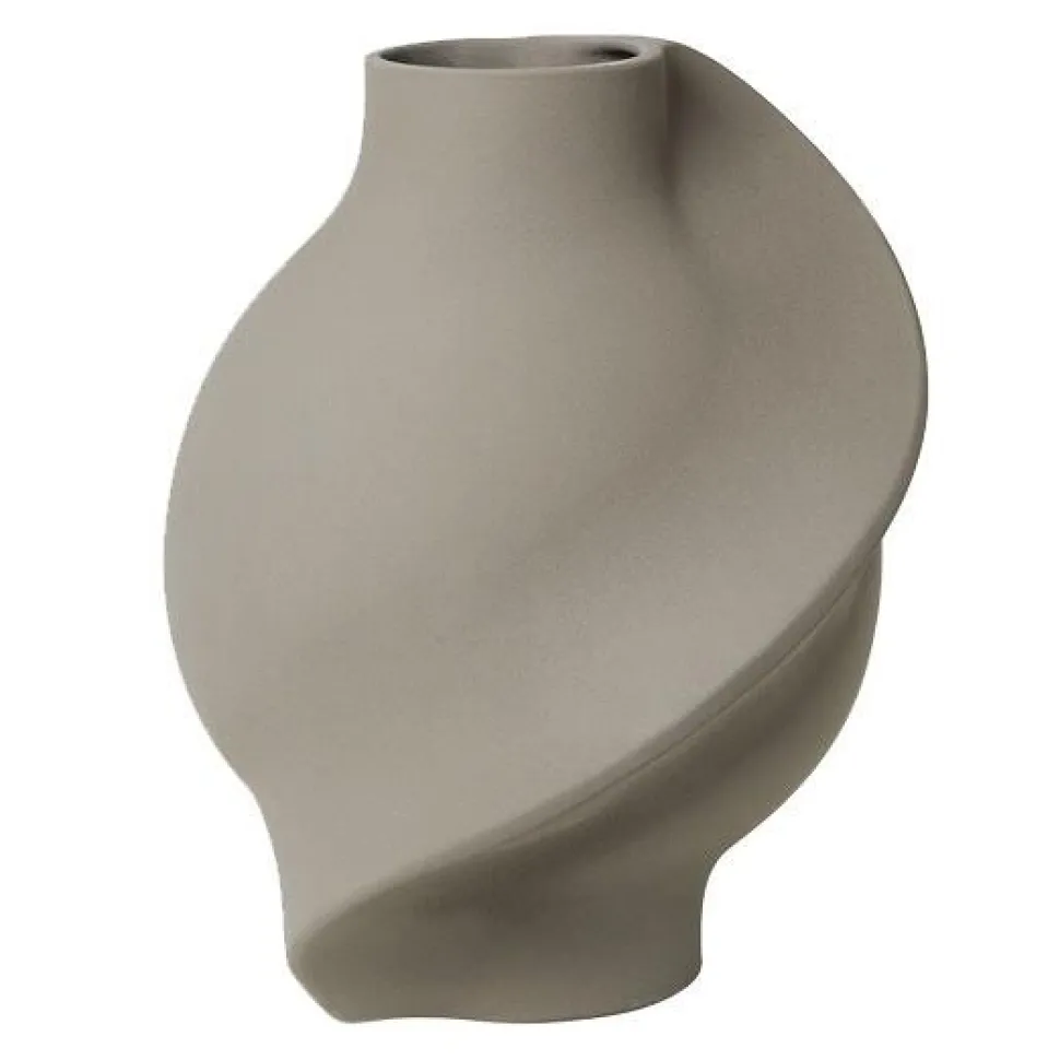 Voluminøs og stilfuld vase, der med sine organiske linjer og blide ånd svajer forførende. Designet er skulpturelt og formsproget elegant, hvorfor objektet emmer af eksklusivitet. Vasen er i al sin enkelthed et smukt og dekorativt element i boligindretningen, men den er tilmed flot at kombinere med andre designobjekter. Vasen er håndstøbt med omhu, hvorfor hvert objekt er subtilt karakteristisk – dét betyder, at variationer i tykkelse og farveintensitet vil være en naturlighed.