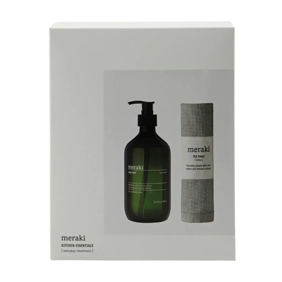Gaveæsken består af en essentiel duo til køkkenet – nemlig en anti-odour håndsæbe og et viskestykke. Håndsæben har lette duftnoter af mint og blomster, som effektivt fjerner uønskede lufte fra madlavningen, såsom løg og skaldyr. Desforuden indeholder håndsæben betain, som blødgør og styrker hudens naturlige barriere. Viskestykket er forener det praktiske med det æstetiske i tidløse, rolige farvenuancer. Viskestykket er fremstillet af OEKO-TEX® 100 certificeret bomuld.
