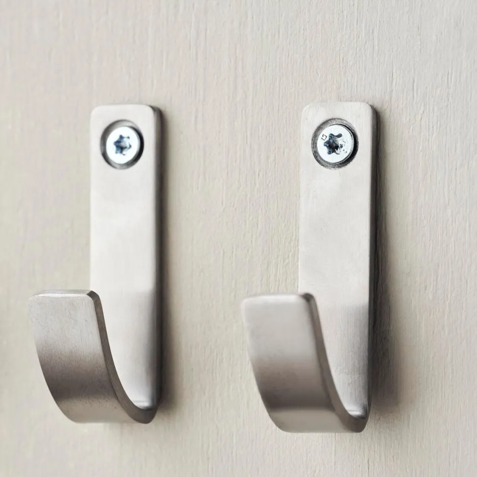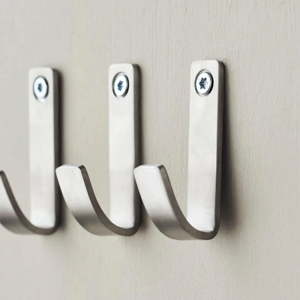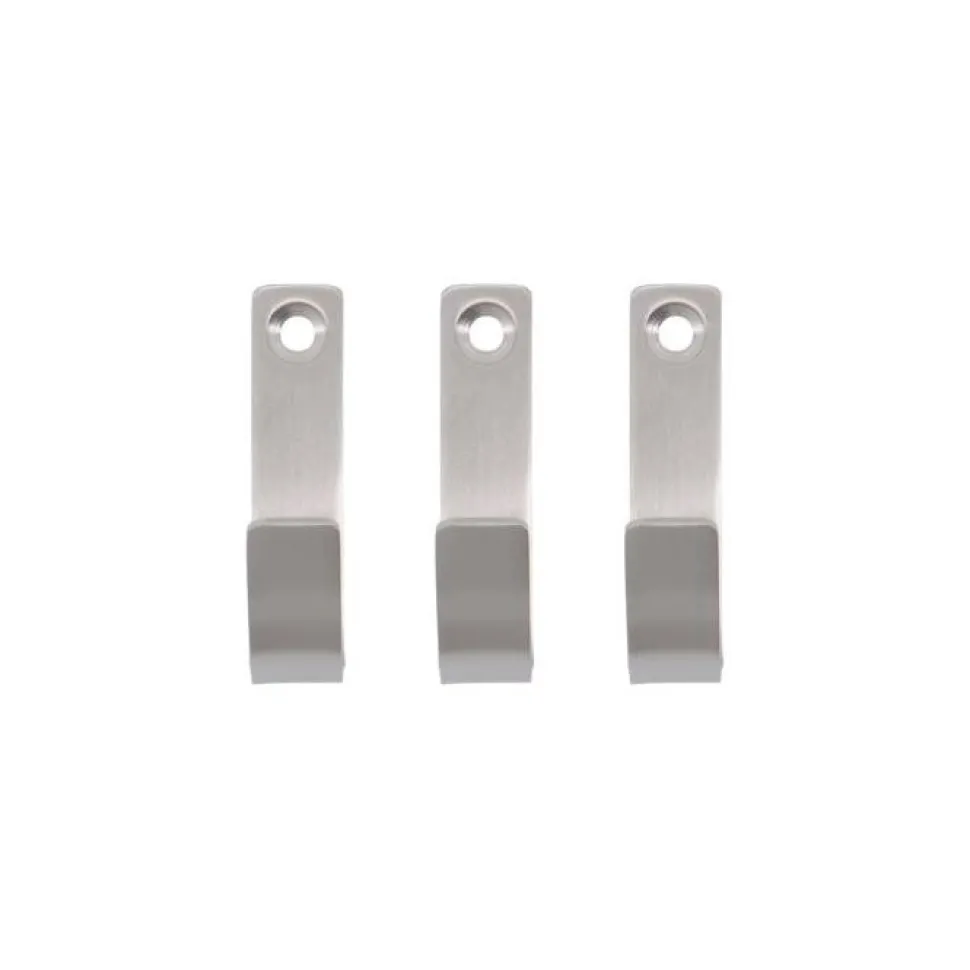 Små detaljer kan gøre en stor forskel på badeværelset. Dette sæt med tre knager i rustfrit stål er det tidløse valg, som tilføjer elegance og en følelse af ro til rummet. Knagerne har et minimalistisk og stilrent design med en børstet sølvfinish. Benyt ikke blot knagerne til håndklæder, men tilmed badekåber og kurve.