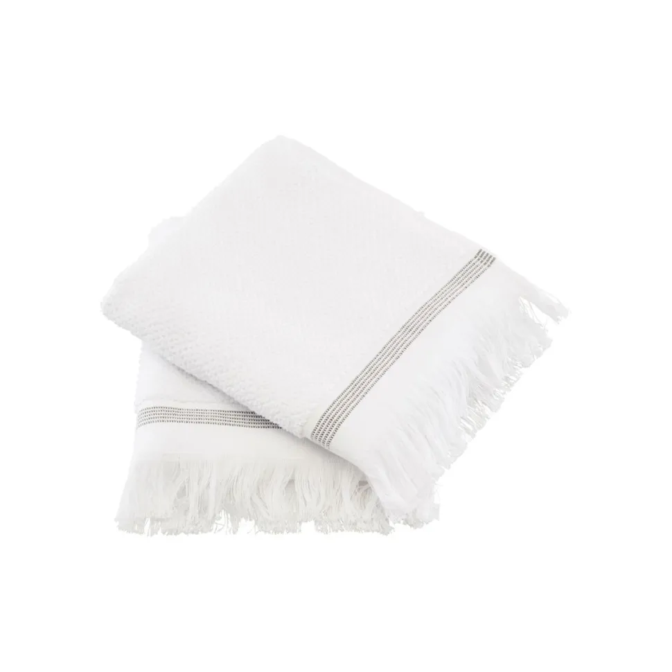 Enkle og minimalistiske håndklæder, som er helt ideelle til at skabe en skøn og afslappet atmosfære på badeværelset. Håndklæderne er fremstillet i økologisk bomuld, hvorfor de føles yderst bløde og behagelige mod huden. Designet og farvevalget er neutralt, hvorfor der er tilføjet fine flæsedetaljer i kanten. Håndklæderne udgør desuden et dekorativt element i indretningen på badeværelset, hvorfor de er fine at kombinere med håndklæder i andre farver.