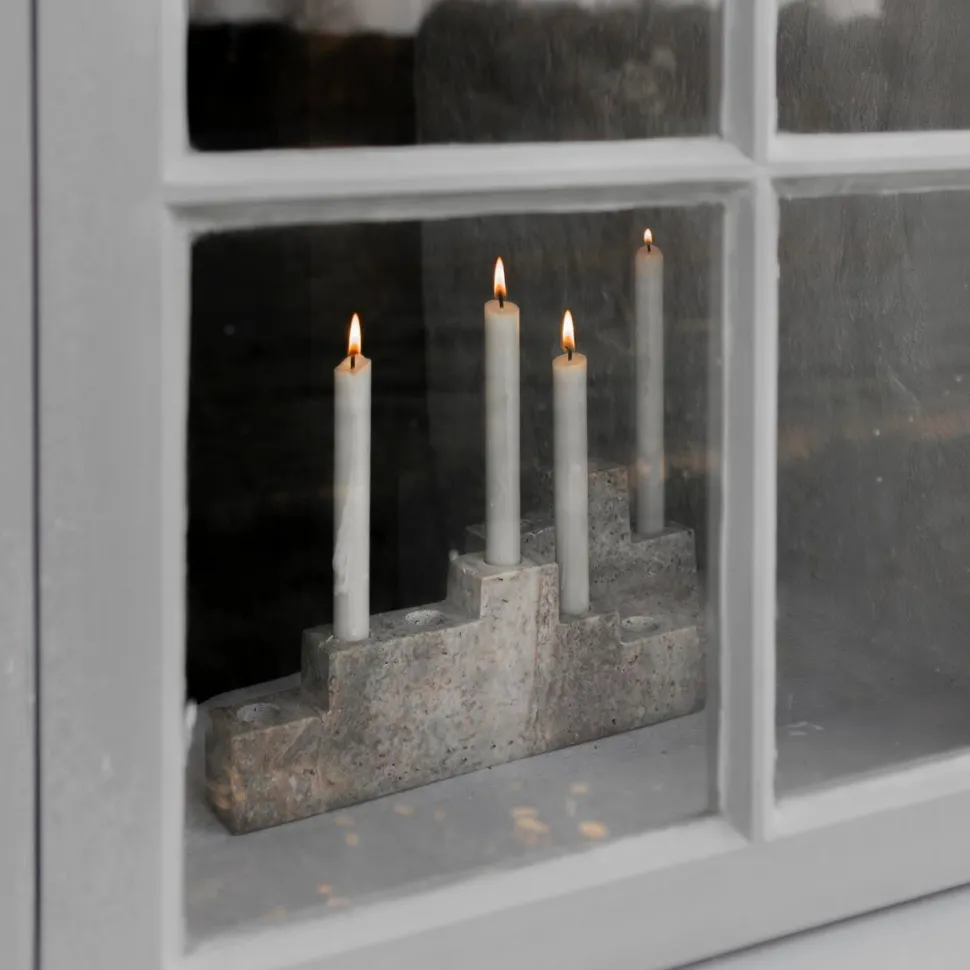 Moderne og minimalistisk lysestage, der skaber en varm og indbydende atmosfære i hjemmet. Lysestagen er fremstillet af travertin i sin reneste form, hvorfor den elegant fremviser små fordybninger og huller, der er karakteristisk for materialet. Dét bidrager tilmed til dens unikke charme, idet ej to lysestager er ens. Lysestagen udstråler en tidløs elegance og tilfører et naturligt dynamisk spil til enhver indretning. Stagen er i al sin enkelthed yndefuld, men den er tilmed fin i kombination med andre lysetager.