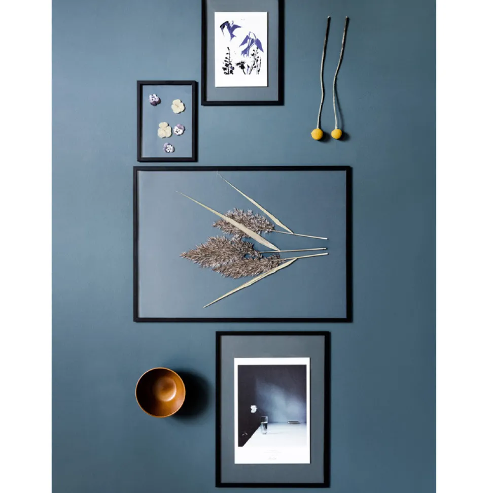 Enkel, transparent ramme i aluminium og plexiglas. Moebe rammen er perfekt til forskellige former for udstilling i hjemmet. Rammen er sammensat af fire metalsider i sort pulverlakering og en elastik, som holder sammen på plexiglasset. Den simple ramme kan bruges til udstilling af børnetegninger, pressede blomster og blade, små plakater eller illustrationer. Hæng rammen op på væggen eller lad den stå fremme og pynte på en reol eller kommode.