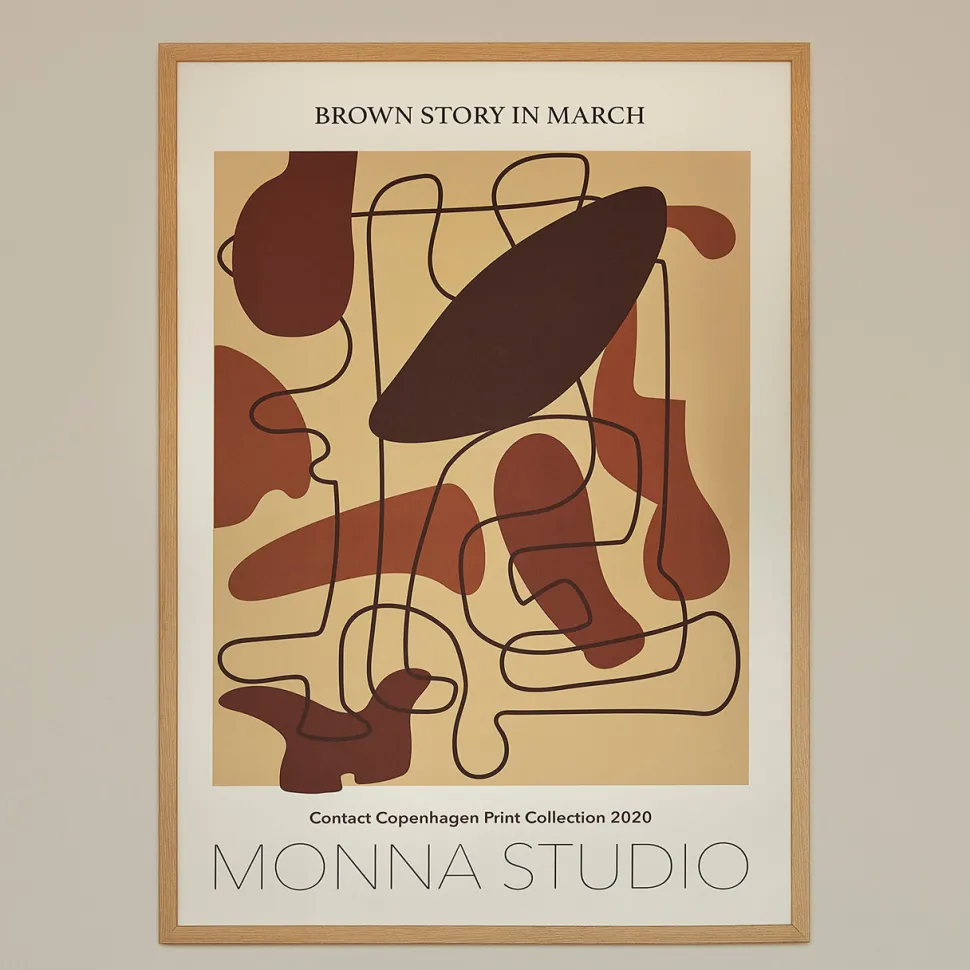 Moderne og grafisk plakat, som er designet i den fineste farvepalette. MONNA Studio følger sæsonens interiørtrends og farver, hvilket afspejles gennem smukke dekorationer til væggene. Det grafiske tryk er inspireret af modernismens udtryk og farvenuancerne komplementerer hinanden smukt. Plakaten er i al sin enkelthed dekorativ, men den tager sig tilmed godt ud i kombination med andre illustrationer.