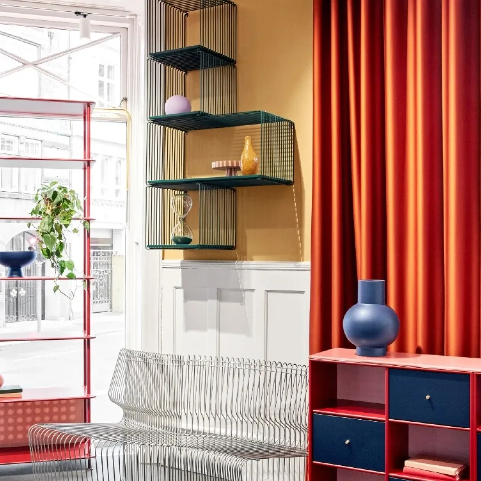 Brug den enkeltvis eller sammensæt flere moduler for et personligt udtryk. Montana Verner Panton trådreolen kan dermed bruges i flere af hjemmets rum, som et skulpturelt og unikt møbel.