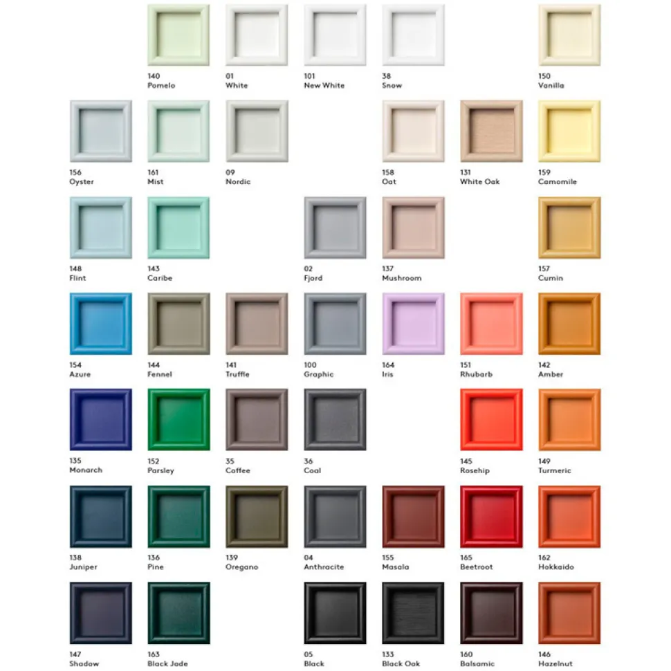 Skænken kan vælges i Montanas 40 lakfarver, og ophæng, sokkel eller ben. Ved ønske om anden farve end vist, bedes du kontakte os på mail eller telefon for bestilling.