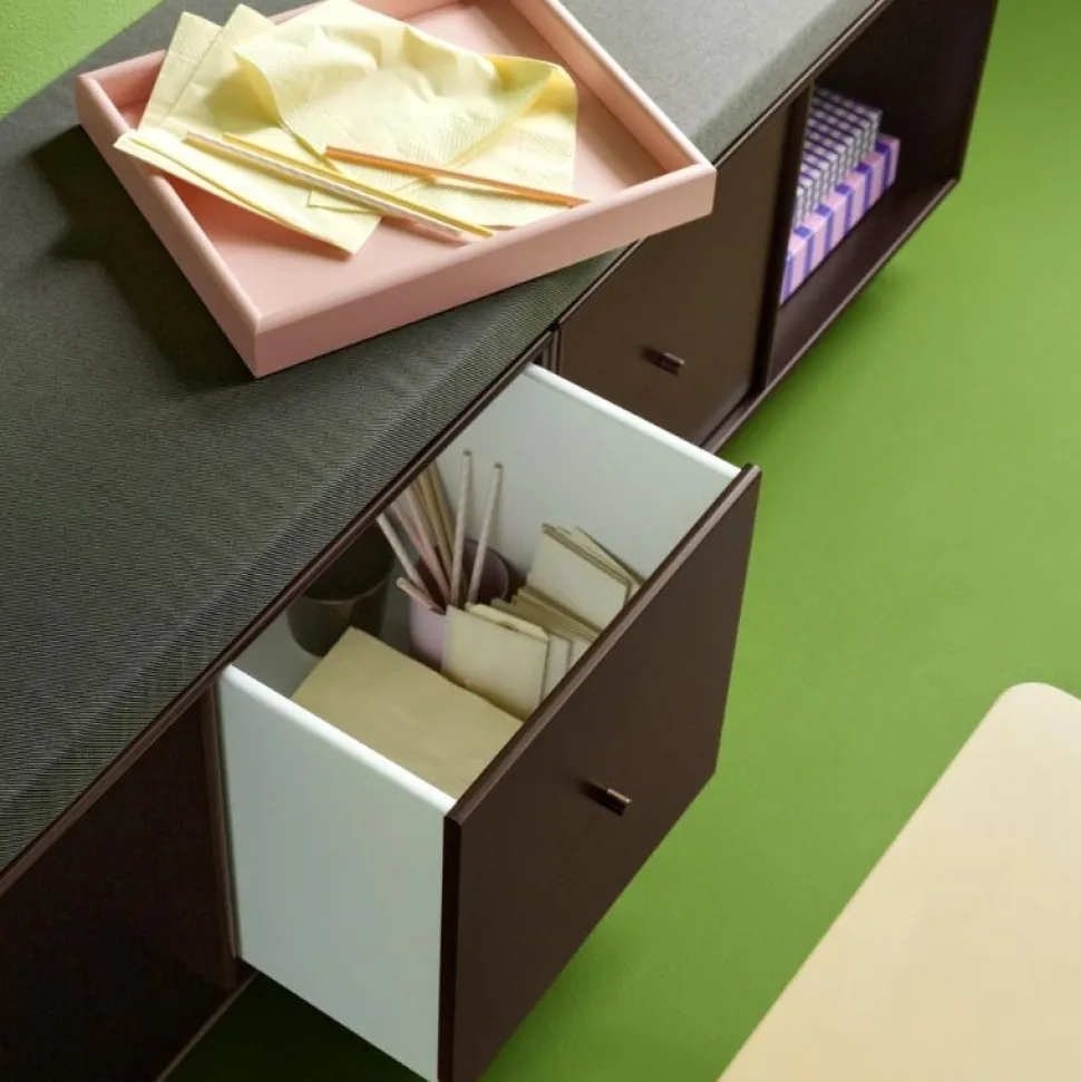 Montana Rest 3 er en alsidig opbevaringsbænk udstyret med fire åbne rum og to skuffer, der elegant optimerer og organiserer dit rum effektivt. Bænkens design kombinerer komfortabel siddeplads med stilfuld opbevaring. Bænken er ideel til enhver rumtype og skaber et behageligt siddeområde, uanset placering.
