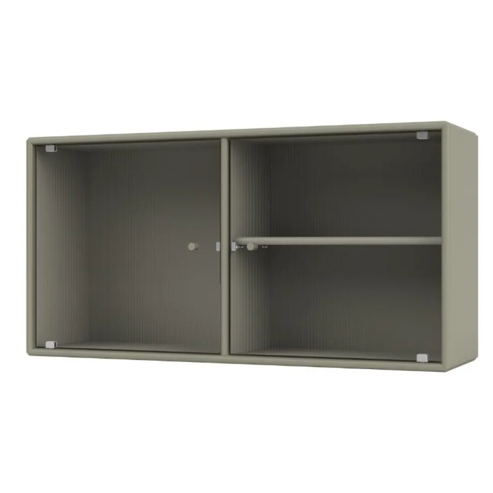 RIPPLE I er et væghængt vitrineskab med 2 låger i riflet glas. Skabet kan bruges som overskab i køkkenet, som et dekorativt skab i stuen eller spisestuen. RIPPLE I har 1 flytbar hylde med bærere, som gør det let at arrangere og omarrangere hylden efter behov. Grebene er pulverlakerede i samme farve som skabet.