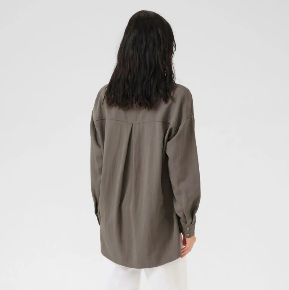 Denne langeærmede skjorte i farven Walnut kombinerer et casual udtryk med stilfuld komfort. Skjorten har en baggy fit og en længde til midt på låret, hvilket giver et løst og afslappet look – ideel til både hverdag og weekender. Den rummelige pasform gør den perfekt til lag-på-lag styling eller som let overtøj på lune dage.