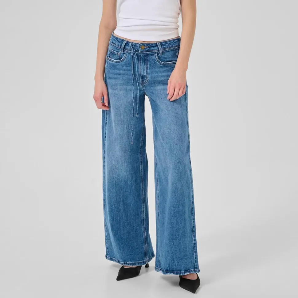Alsidige jeans, der forener et moderne udtryk med komfort. Den vide pasform og det justerbare bindebånd i taljen giver et stilrent look med en afslappet fornemmelse. Den klassiske farvenuance skaber et tidløst præg, mens de lange ben og de traditionelle lommedetaljer fuldender designet. Jeansene kombinerer casual attitude med stilrent design – ideel til både hverdagsbrug og mere polerede outfits.