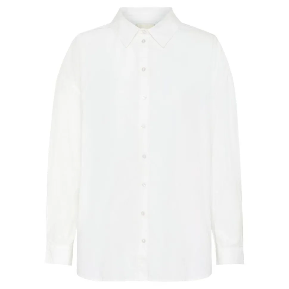 Denne skjorte i farven Bright White er fremstillet i 100 % økologisk bomuld og har en afslappet, boxy pasform, der giver et moderne og ubesværet udtryk. Med sin midtlårlange længde og lange ærmer er den ideel til lag-på-lag styling eller som en let overdel på varmere dage.