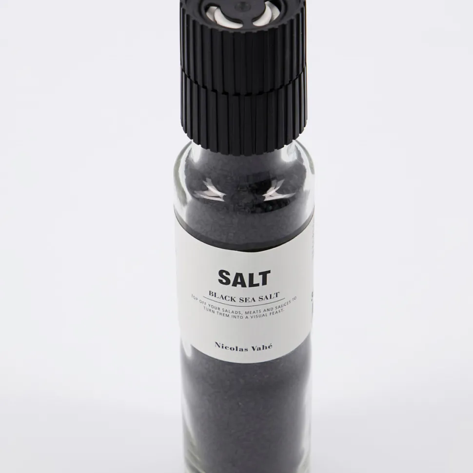 Velsmagende havsalt, som er blandet med aktivt kul, hvilket tilfører retterne et iøjenfaldende touch. Man spiser i høj grad med øjnene, hvorfor det samlede udtryk på retterne højnes med den dybe, sorte farve. Saltet gør madlavningen til en visuel fest og er særdeles velegnet til blødkogte æg, salater, kød og saucer. Saltet leveres med en keramisk kværn, som fint formaler krydderierne, således at olierne og dermed mere aroma og smag frigives til retterne.