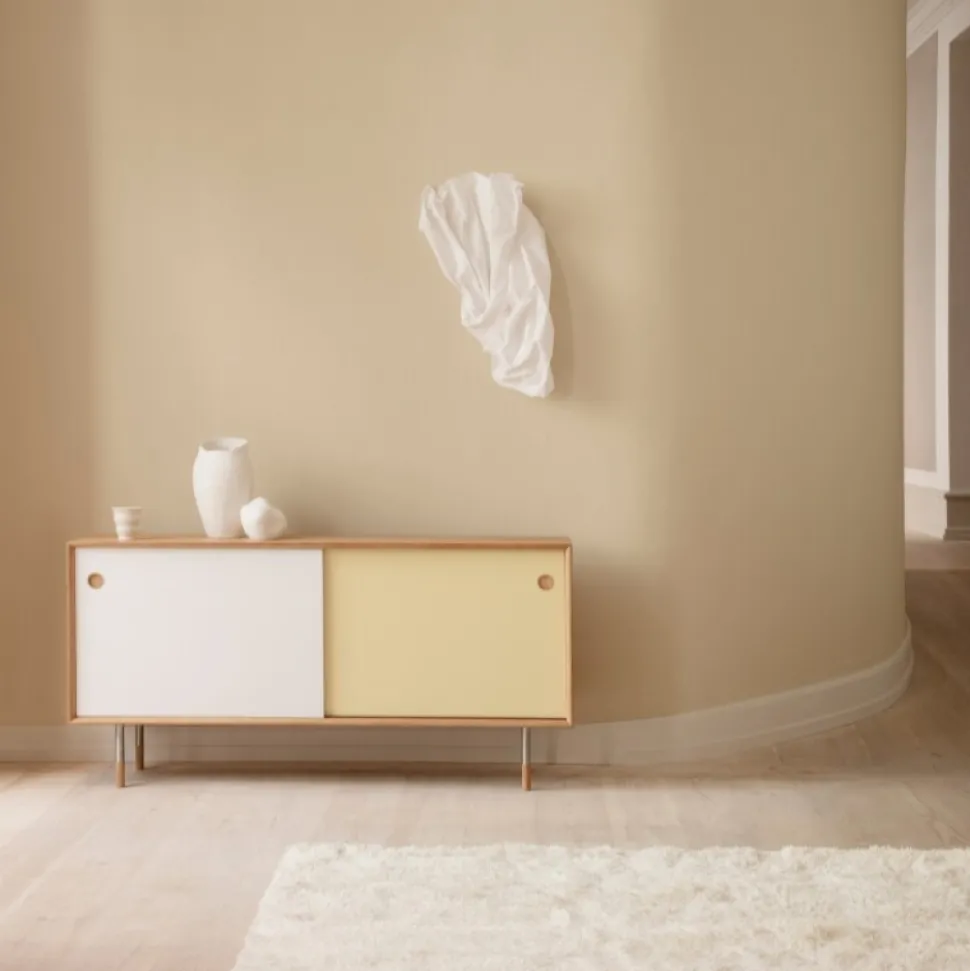 Mere end 60 år senere har Arne Vodders familie søgt i arkiverne i Vodder Møbler, sammen med Sibast Furniture. Sibast No 11 skænken er lavet af massivt træ med ege- og valnøddefiner. Den har vendbare døre med farvede overflader på den ene side og træ på den anden. Fås i gul, hvid, blå og sort. Træ- og stålben.
