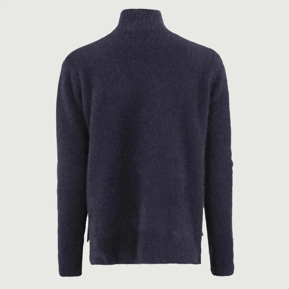 Komfortabel sweater, der forener æstetik, kvalitet og funktion. Den løse pasform og høje, runde hals skaber en omsluttende og indbydende form, mens ribkanter ved hals, ærmer og kant tilfører subtil struktur og elegant finish. Fremstillet i 100% ultrablød ræveuld, omfavner materialet kroppen med varme og behagelig komfort, hvilket gør sweateren til et luksuriøst lag på kølige dage. Et alsidigt garderobeitem, der forener tidløs stil med blød luksus – ideel til både hverdag og weekend.