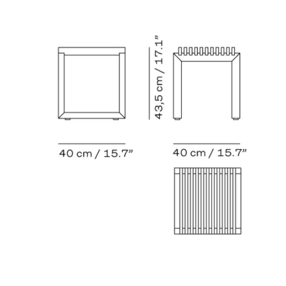 Den stilfulde Cutter-serie begyndte som en udfordring til det nostalgiske og romantiske design, der i mange år har været kendetegnende for havemøbler i træ. Den smukke Cutter taburet fokuserer på rene, enkle linjer og et elegant design. Skamlen har flere anvendelsesmuligheder, og møblets funktion kan ændres i takt med at behovene forandres.