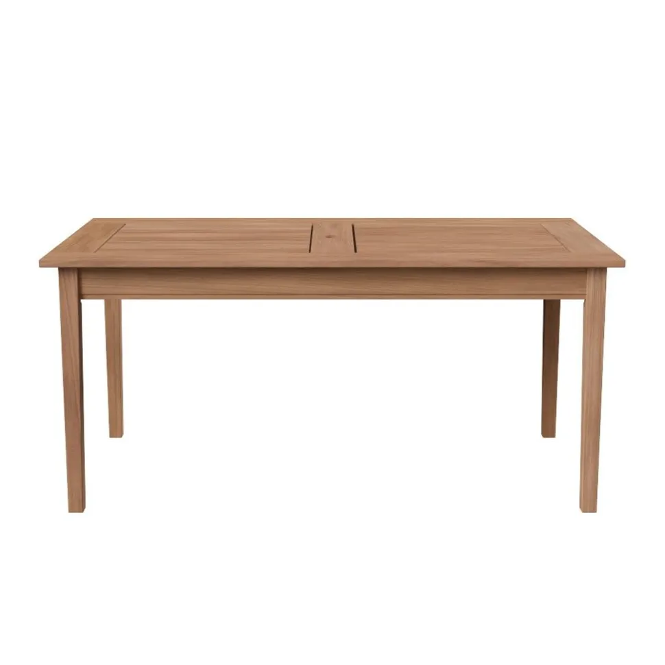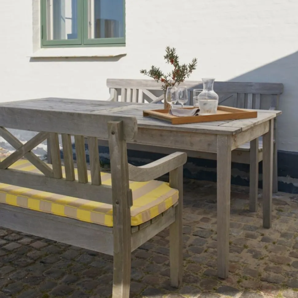Tidløst og klassisk bord, der udtrykker en omhyggelig balance mellem nordisk nostalgi og moderne enkelhed. Det rektangulære bord er fremstillet i FSC-certificeret teak og designet i samarbejde med Mogens Holmriis. Bordet er udført med et praktisk hul i midten, hvori der med fordel kan placeres en parasol.