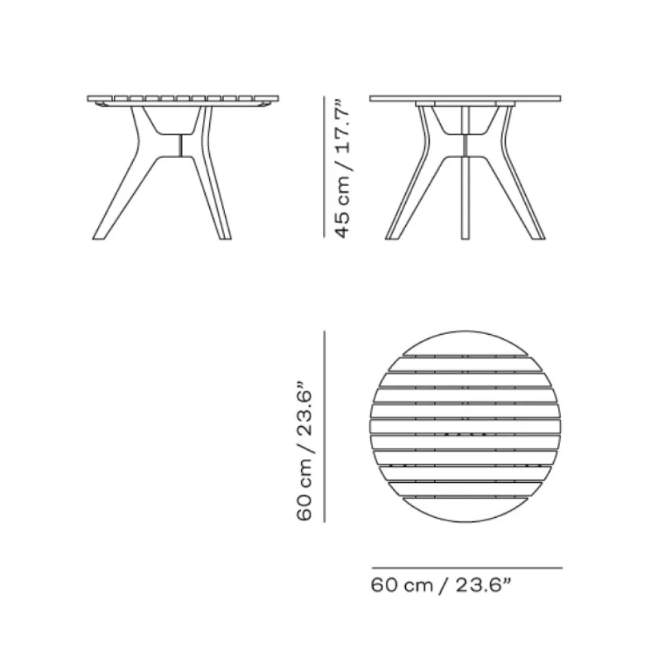 Med sine smukke minimalistiske linjer og bløde kurver giver Regatta-serien ethvert uderum karakter. Designet af tegnestuen Hans Thyge & Co. Regatta. Med sin lave profil er Regatta loungebordet det perfekte match til seriens stol. Bordet i teaktræ består af en lamelbordplade og en robust trebenet fod. Det patinerer smukt og får en sølvgrå tone med tiden.