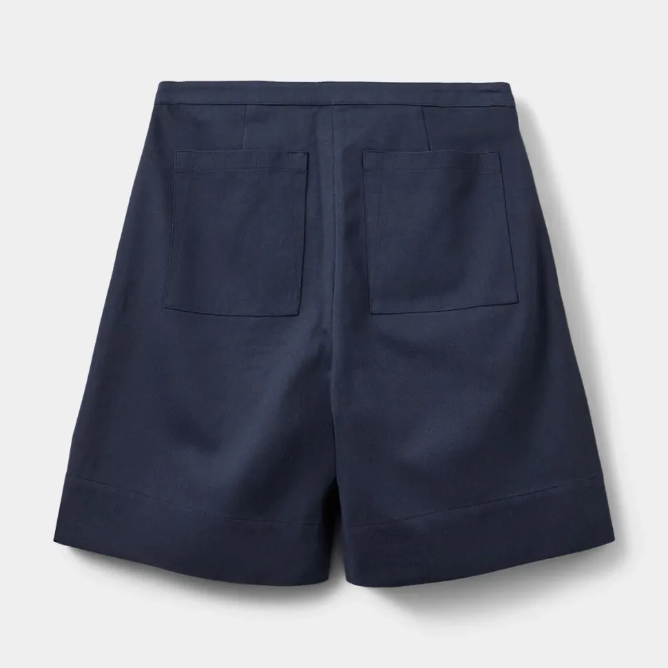 Tidløse shorts i en klassisk farvenuance. Shortsene er designet med læg foran, som giver et elegant og struktureret udtryk, samtidig med at de bevarer komforten. Praktiske detaljer som sidelommer, påsatte baglommer og lynlås- og hægtelukning sikrer både funktionalitet og et gennemført look. Shortsene kan nemt styles til både afslappede hverdagsoutfits med en enkel t-shirt eller til mere polerede sommerlooks med en bluse eller skjorte. Et alsidigt og tidløst stykke, der kombinerer komfort, kvalitet og stilfuld detalje.
