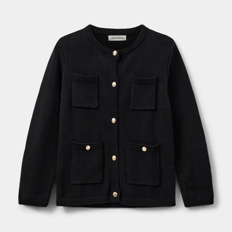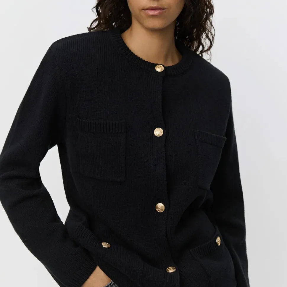 Tidløs strikklassiker med et raffineret twist, der opgraderer garderoben. Den elegante cardigan kombinerer klassiske linjer med sofistikerede detaljer, hvilket tilfører karakter ethvert udtryk. De let markerede skulderpuder skaber struktur og fremhæver silhuetten på fineste vis, mens de store sømandsknapper skaber et iøjnefaldende udtryk. Fire frontlommer, hvoraf de nederste har knaplukning, giver både funktionalitet og visuel interesse, og ribdetaljer på lommer og kanter fuldender designet med finesse. Cardiganen er et alsidigt statement-piece, der kombinerer komfort, kvalitet og tidløs stil.