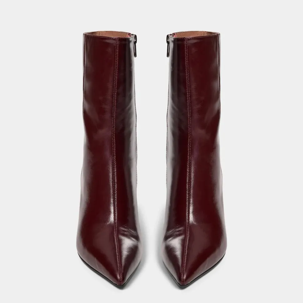 Glansfulde støvler, der kombinerer klassisk elegance med moderne kant – et statement-piece til skosamlingen. Den spidse snude og den markante syning i midten giver støvlen et raffineret udtryk, mens den høje hæl tilføjer både højde og attitude. Med lynlås i siden er støvlen let at tage af og på, og det gennemførte design gør den ideel både til hverdagsbrug og særlige anledninger. Et par støvler, der løfter ethvert outfit og tilfører garderoben både eksklusivitet og stil.