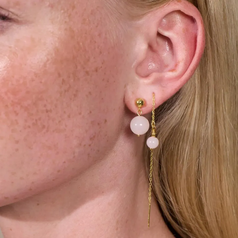 Yndige og stilfulde øreringe i den blideste farvenuance. Øreringene er skabt med formålet om at finde sindsro, kærlighed, indre balance og tilgivelse. Krystallen siges at åbne hjertet og styrke forbindelser med andre. Den blide farve symboliserer kærlighed og harmoni. Håndlavet med omhu og præcision er øreringene mere end blot et smykke – dé er et udtryk for naturlig skønhed og positiv energi. Øreringene er unika, idet krystaller aldrig er ens.