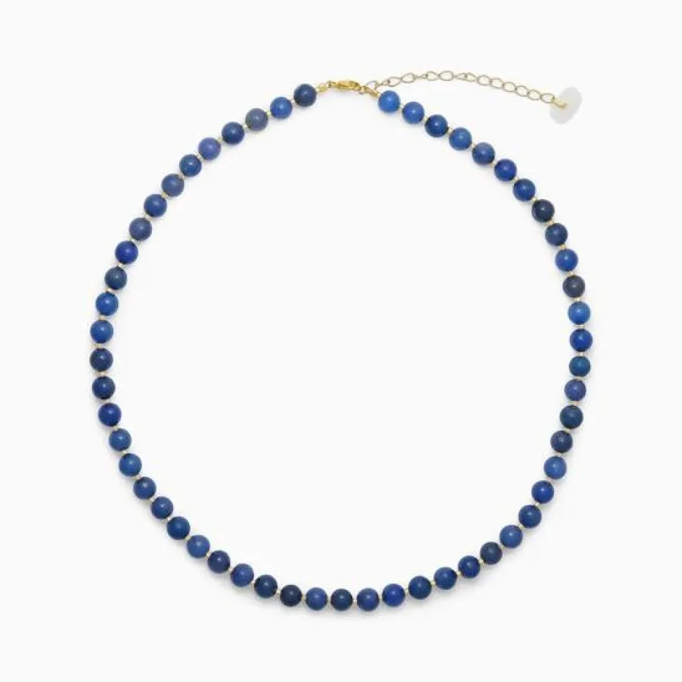 Stilren halskæde i farvefine blålige nuancer, der symboliserer fred, sindsro og balance. Den blå jade anses for at være en krystal for indre ro, klarhed og følelsesmæssig stabilitet, hvorfor halskæden er skabt med formålet om at finde indre balance, ro og harmoni. Håndlavet med omhu og præcision er halskæden mere end blot et smykke – dén er et udtryk for elegance og positiv energi. Halskæden er unika, idet krystaller aldrig er ens.