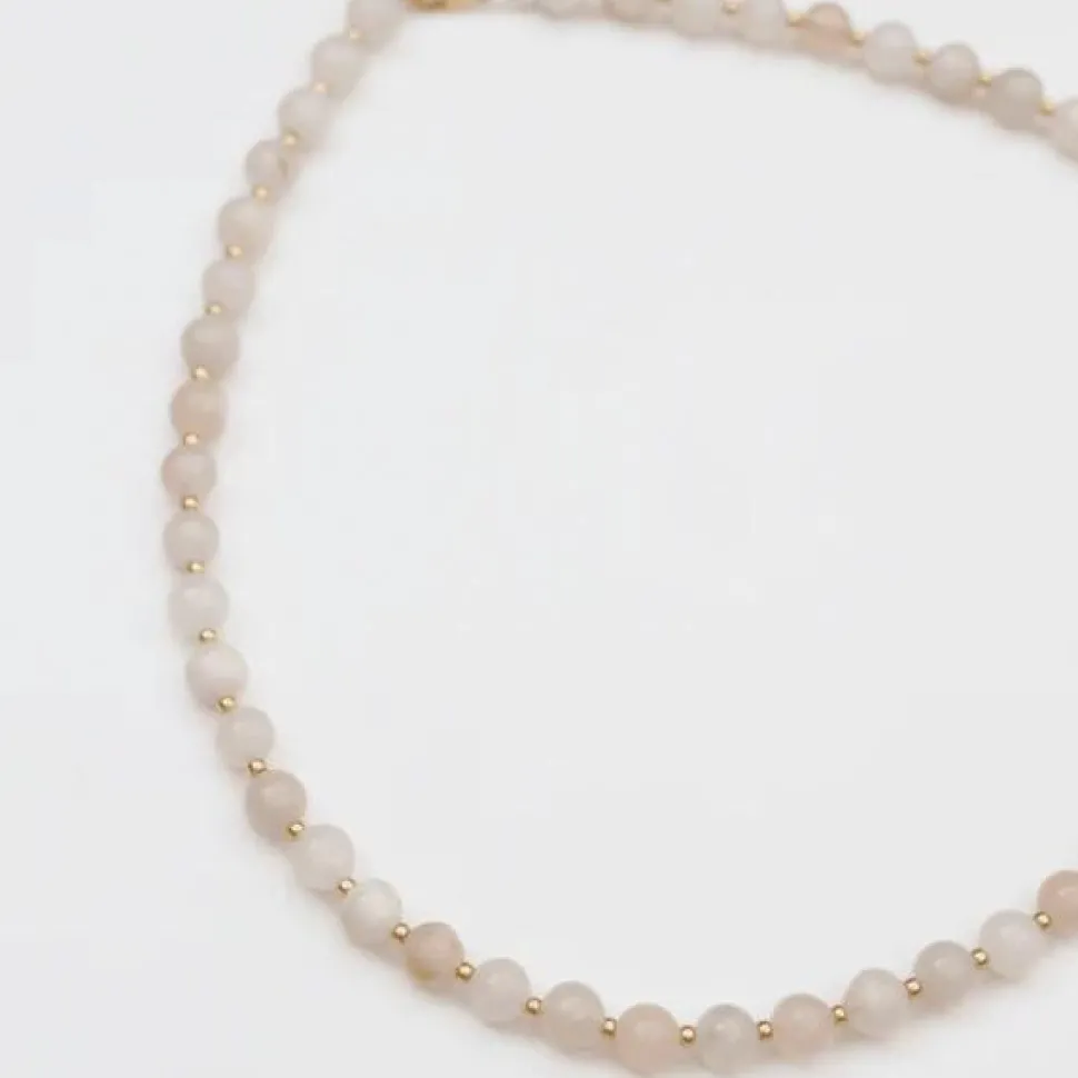 Enkel halskæde i farvefine rosa nuancer, som repræsenterer skønhed, elegance og godhed. Den blide rosa jade symboliserer kærlighed og harmoni, hvorfor halskæden er skabt med formålet om at finde indre balance, empati, medfølelse og tilgivelse. Krystallen siges at åbne hjertet og styrke forbindelser til andre. Håndlavet med omhu og præcision er halskæden mere end blot et smykke – dén er et udtryk for naturlig skønhed og kærlighed. Halskæden er unika, idet krystaller aldrig er ens.