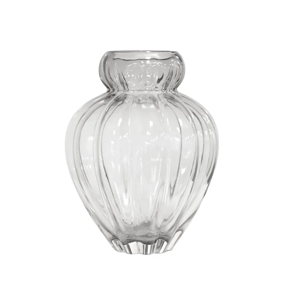 Smuk og dekorativ vase med et skulpturelt formsprog og elegant mønster. Vasen er designet til at være et centralt designobjekt i boligindretningen hele året – uanset blomstertrend og sæson. Vasen er mundblæst, hvorfor der kan forekomme luftbobler og andre ufuldkommenheder – dét er blot en del af charmen.