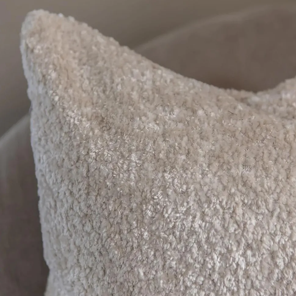 Blød og stilfuld pude, der på fineste vis balancerer komfort og æstetik. Puden er udført i den fineste elfenbensfarvet nuance og i tekstureret materiale, der skaber et raffineret og indbydende udtryk. Puden emmer af diskret luksus , og dens bløde kvalitet gør den ideel til både sofaen, sengen eller yndlingslænestolen. Skab en atmosfære af ro og sofistikering med puden, der skiller sig ud med sin unikke tekstur og klassiske farvetone.