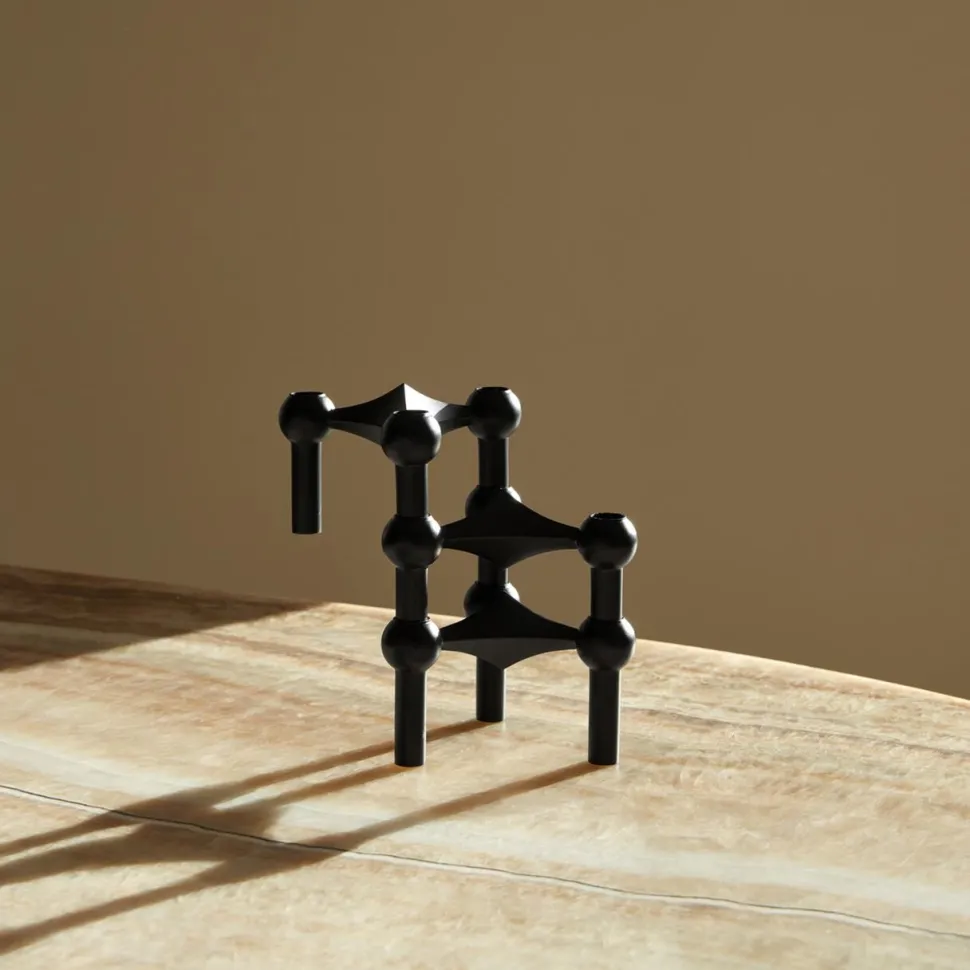 Elegante og tidløse lysestager med et råt twist qua den matsorte farve. Lysestagerne betragtes i dag som et samlerobjekt i hjemmet – et personligt statement og en formbar skulptur, der antager formen af sin ejers unikke kreativitet. Skab og kombiner lysestagerne med andre STOFF Nagel-designs og lad det være en dekorativ skulptur.
