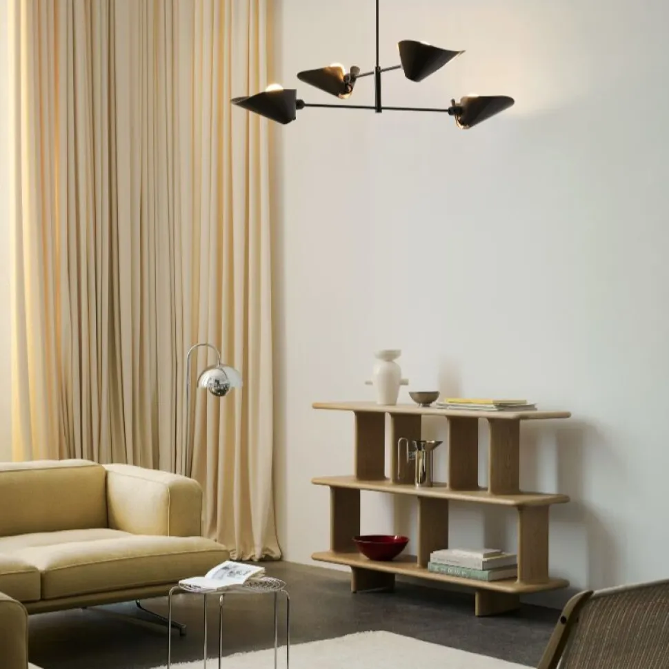 Designstudiet Space Copenhagen har skabt Bonnet – en kollektion, der hylder lysets iboende skønhed. Udformet med omhyggelig sans for detaljer, udstråler lysekronens omrids en aura af ubesværethed og ynde. De buede skærme omslutter lyskilden, som indrammer og leder det diffuse lys med præcision.