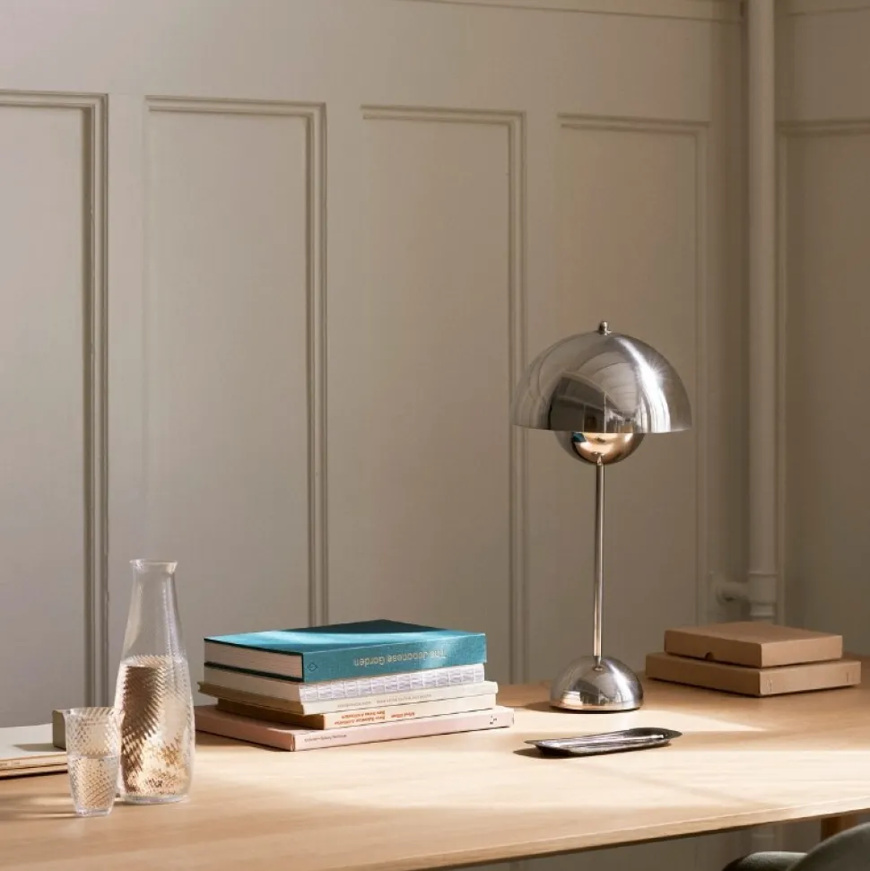 Inspirationen til den populære Flowerpot-serie har grobund i den farverige Flower Power-bevægelse fra slutningen af 1960’erne. Lampen er designet af Verner Panton, som var en af de mest fremadrettede talenter i sin tid. Tankegangen bag designet var, at omfavne en mere åben, moderne mentalitet, som fremmede fred og harmoni – hvilket lampen afspejler.