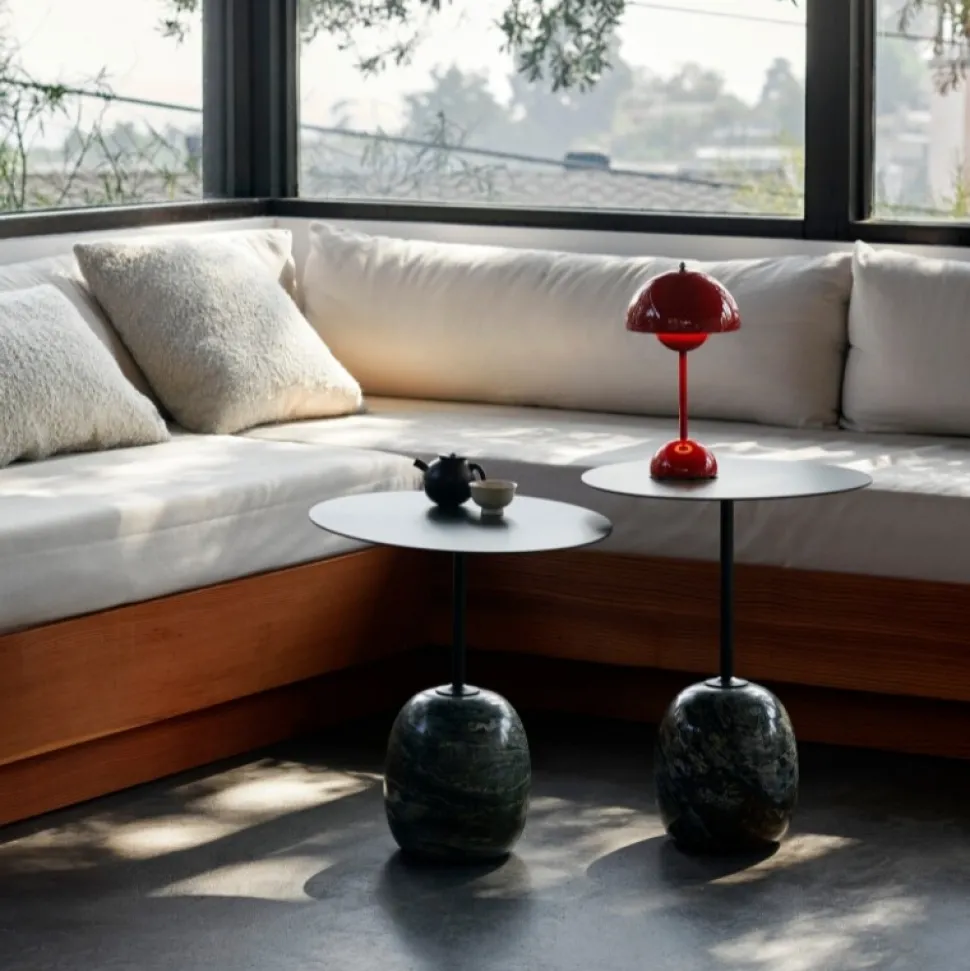 Materiale: Marmor fod med plade i pulverlakeret stål i farven Deep Green.