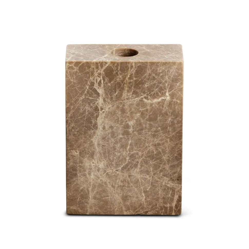 Enkel og tidløs lysestage, der emmer af æstetisk minimalisme. Lysestagen er fremstillet af marmor i den fineste farvenuance, som har en dybde og tyngde, der klæder de fleste hjem. Det stilrene, hørfarvet marmor emmer af varme og bløde efterårstoner. Qua det simple formsprog kommer stenen til sin ret, hvorfor stagen står smuk og sprudlende i al sin enkelthed.