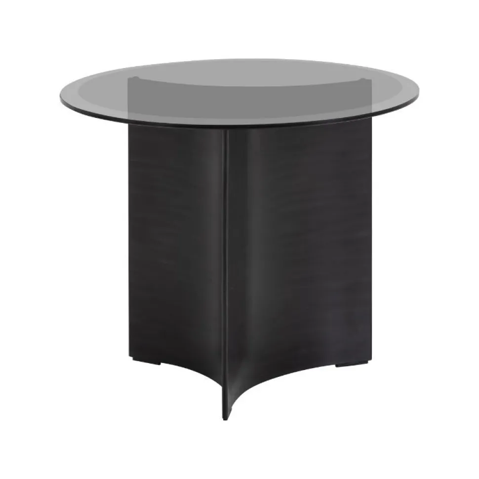 Arc er designet af Toan Nguyen og er sammensat af geometriske former, som danner et elegant og moderne sidebord. Kollektionen omfatter tre borde i forskellige højder og radier, fås i to farvekombinationer: Messingbelagt stålbund med hærdet røget glas bordplade eller sortpoleret stålbund med bordplade i sort hærdet glas.