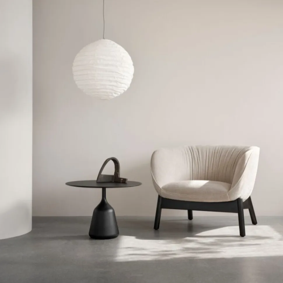 Elegant sidebord med rummelige former. Coin-serien fusionerer cirkulære og kegleformede komponenter. Coin er et geometrisk minimalistisk sidebord som smelter sammen, mens det skiller sig ud. Basen er støbt i sort pulverlakeret aluminium. Coin serien omhandler seks sideborde og seks spiseborde.