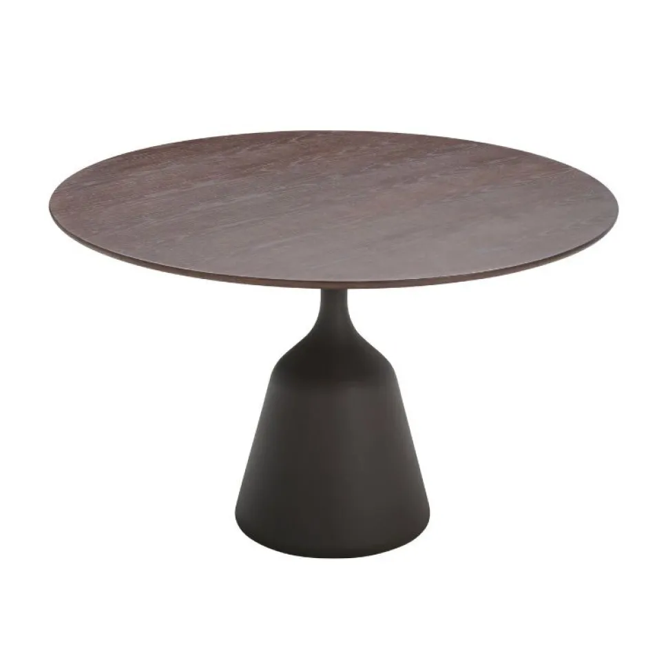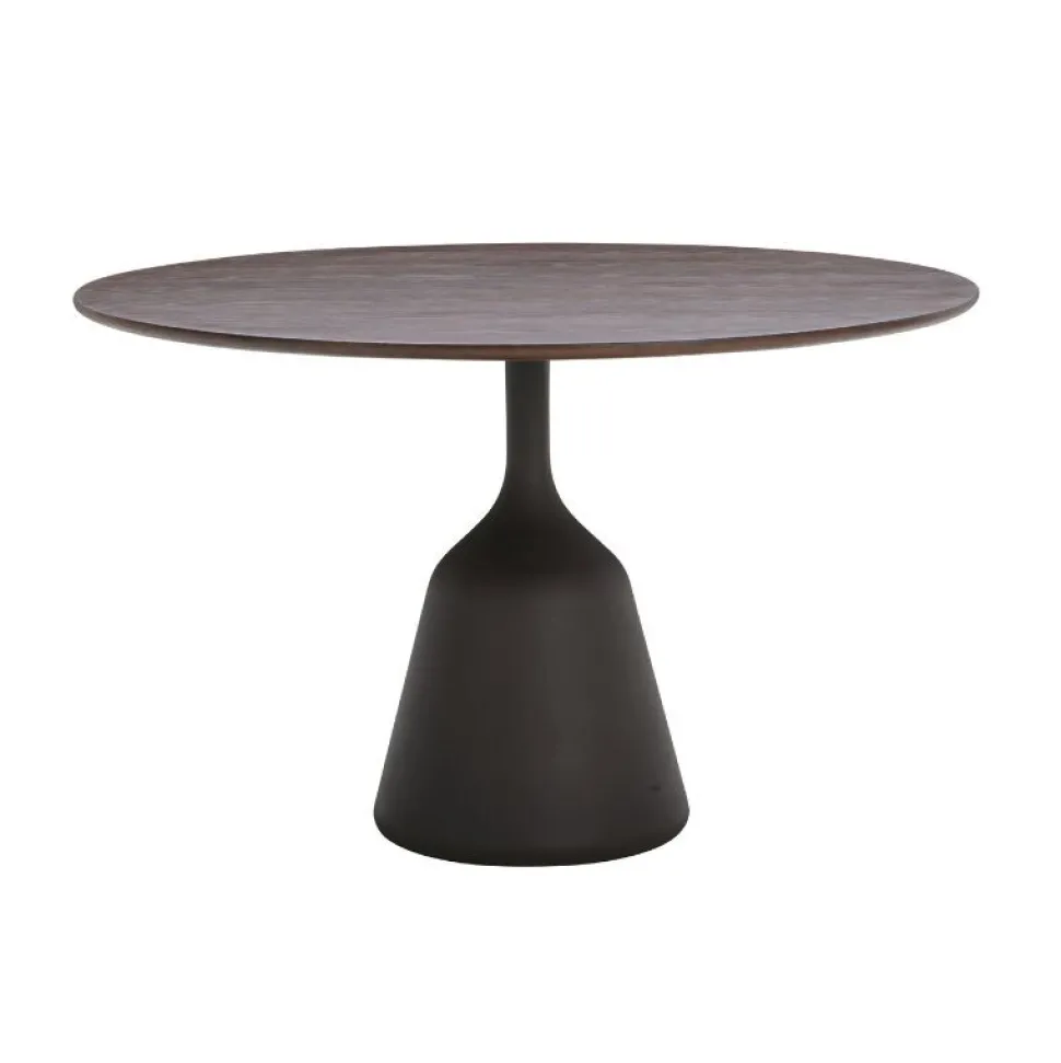 Unik og rummeligt spisebord. Coin Dining Table fusionerer cirkulære og kegleformede komponenter. Coin er et geometrisk minimalistisk spisebord som smelter sammen, mens det skiller sig ud. Støbt i aluminium, enten sortpoleret med messingfinish eller pulverlakeret i sort eller brun.