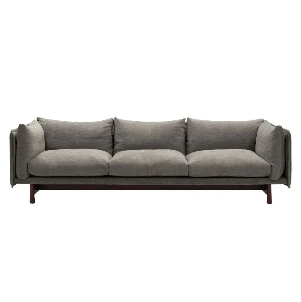 Robust og omsluttende ydre af polstrede paneler, der efterligner en drage og samtidig byder på et blødt, indbydende indre. Trærammen i sortbejdset eg og de tydelige kegleformede ben, forener design med imponerende snedkerdetaljer. Sofaen er yderligere beriget med en omhyggeligt skræddersyet æstetik samt de bløde ryg- og sidepuder, der blidt omslutter det behagelige og indbydende sæde.