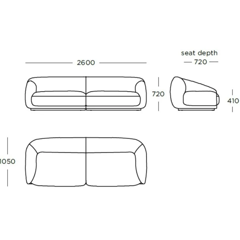 Designet af franske Tristan Lohner, kollektionen spænder over en 2,5- og 3-personers sofa og en loungestol, der vækker sanserne med indbydende kurver og beroligende blødhed. Basen i massiv sortbejdset eg løfter den voluminøse sofa fra jorden og gør udtrykket lettere.
